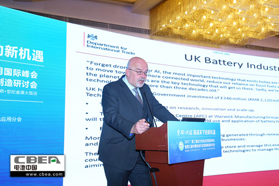 英国驻华公使衔商务参赞魏林(Mark Wareing)博士在致辞中介绍,英国超过1/4的电源来自风能等新能源,很多企业在这方面进行布局,英国政府在规划如何存储和管理这些电源。魏林表示,英国在进行第三代锂电池的研发,并将进一步降低成本,提高电池的能量密度和稳定性。