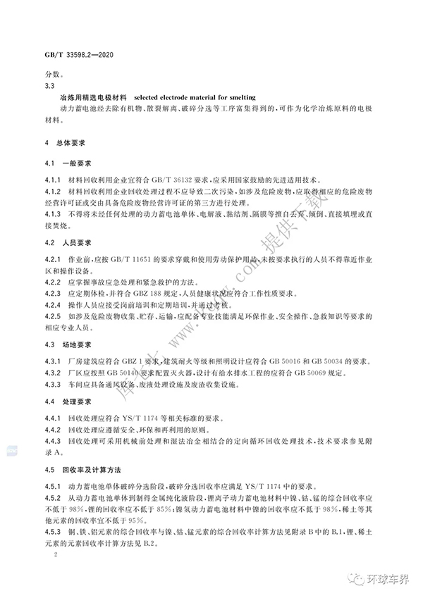 GB∕T 33598.2-2020 车用动力电池回收利用 再生利用 第2部分:材料回收要求