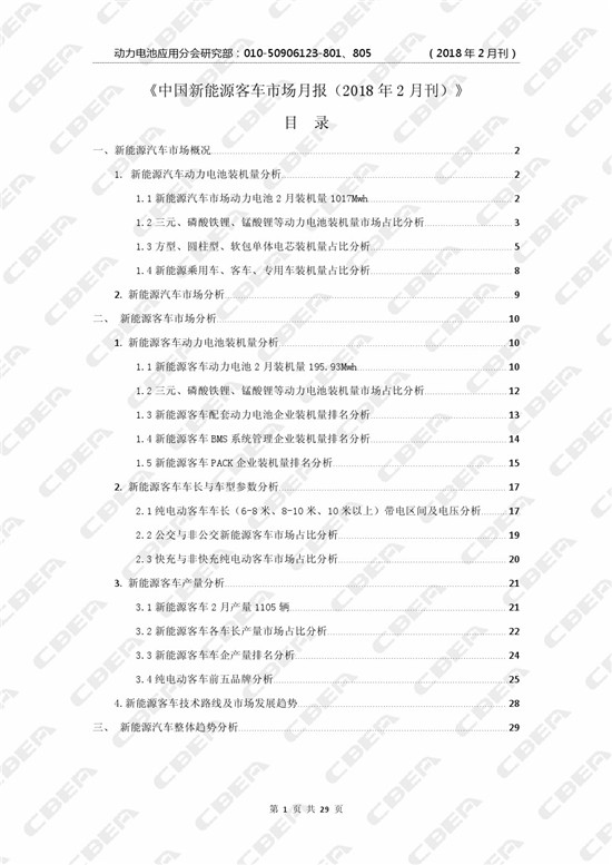 图2:《2018中国新能源客车市场月报(2月刊)》目录