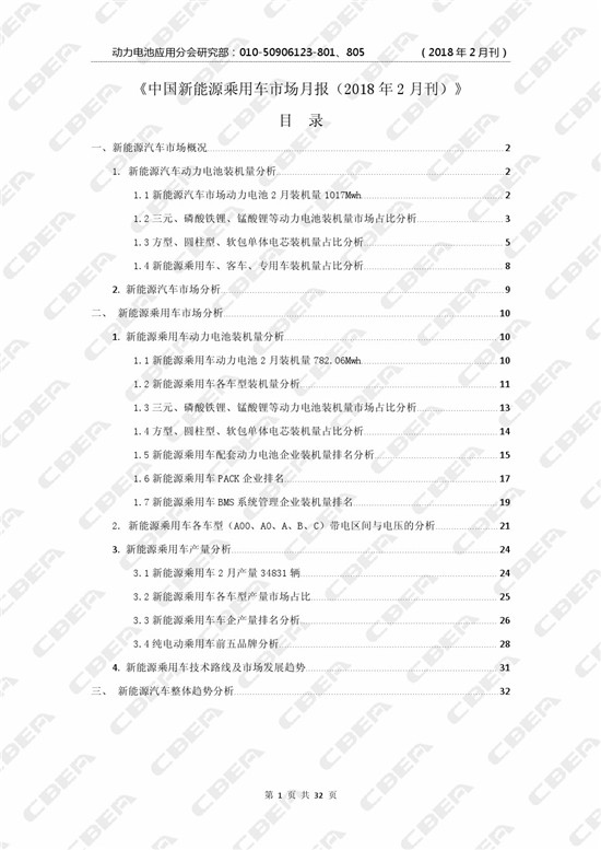 图2:《2018中国新能源乘用车市场月报(2月刊)》目录